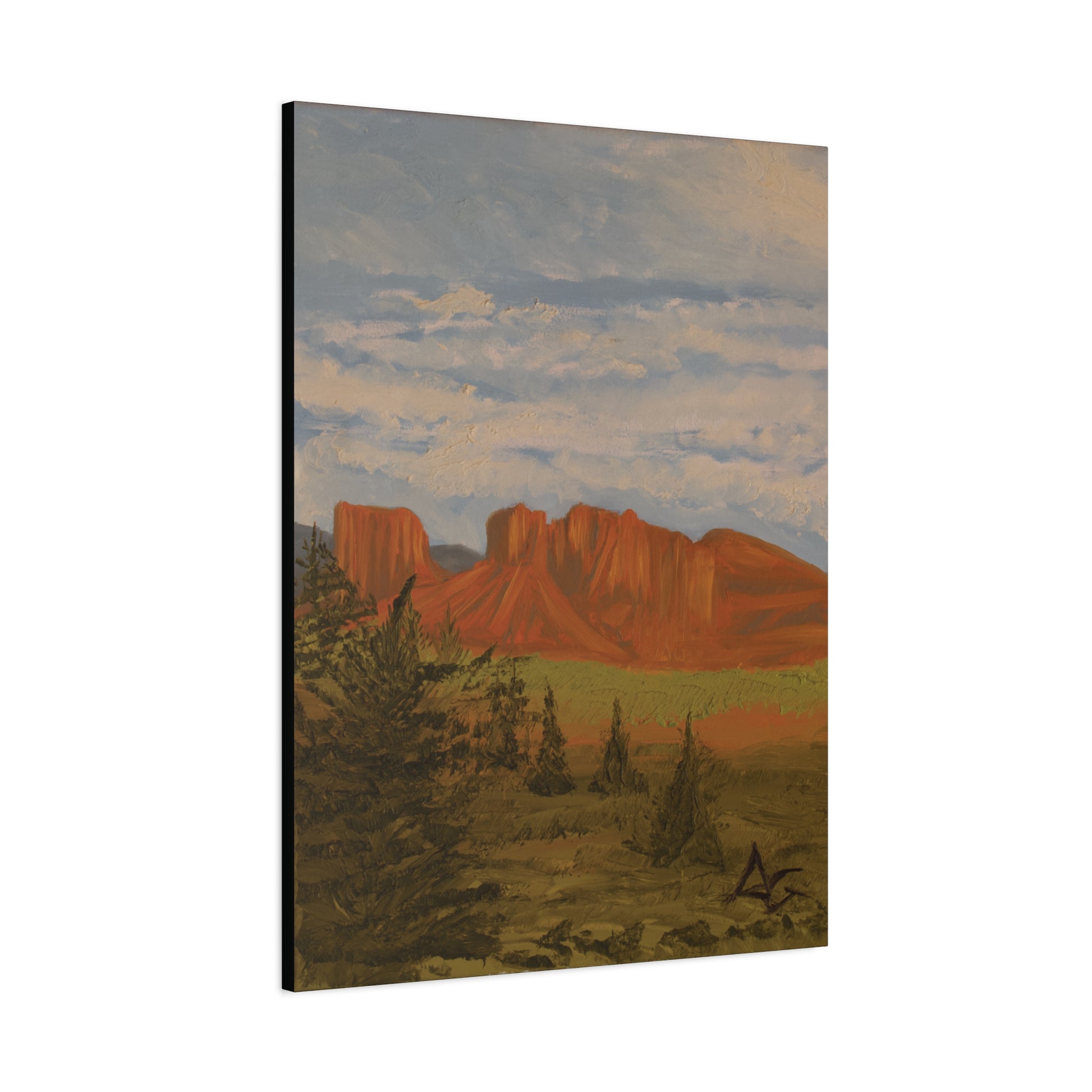 "This painting was born from my first visit to Sedona, Arizona. Upon seeing the breathtaking view of the landscape, I felt an immediate desire to capture its essence. The primary challenge and motivation for this piece was interpreting the incredible, rich color of the red rock formations: a hue I was determined to render on canvas for the very first time. This work represents my process of translating the vibrant, iconic beauty of that unique desert environment into art." -Daniel Griffin