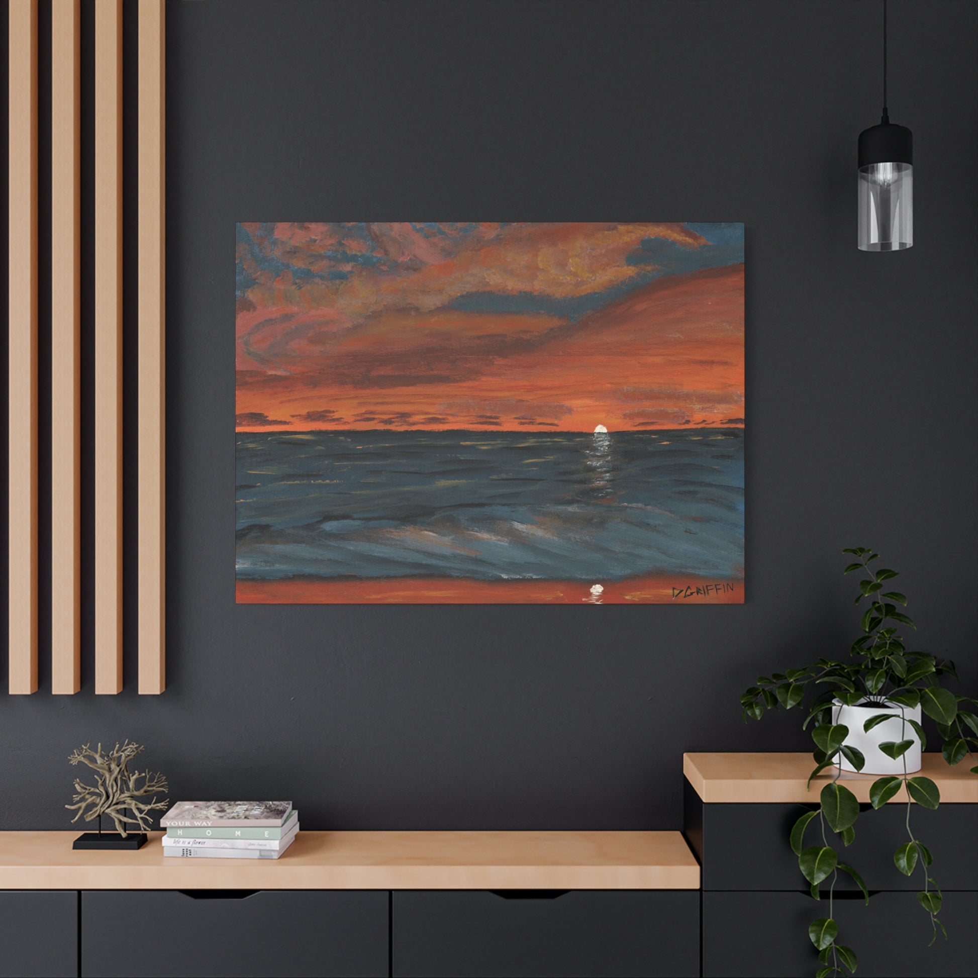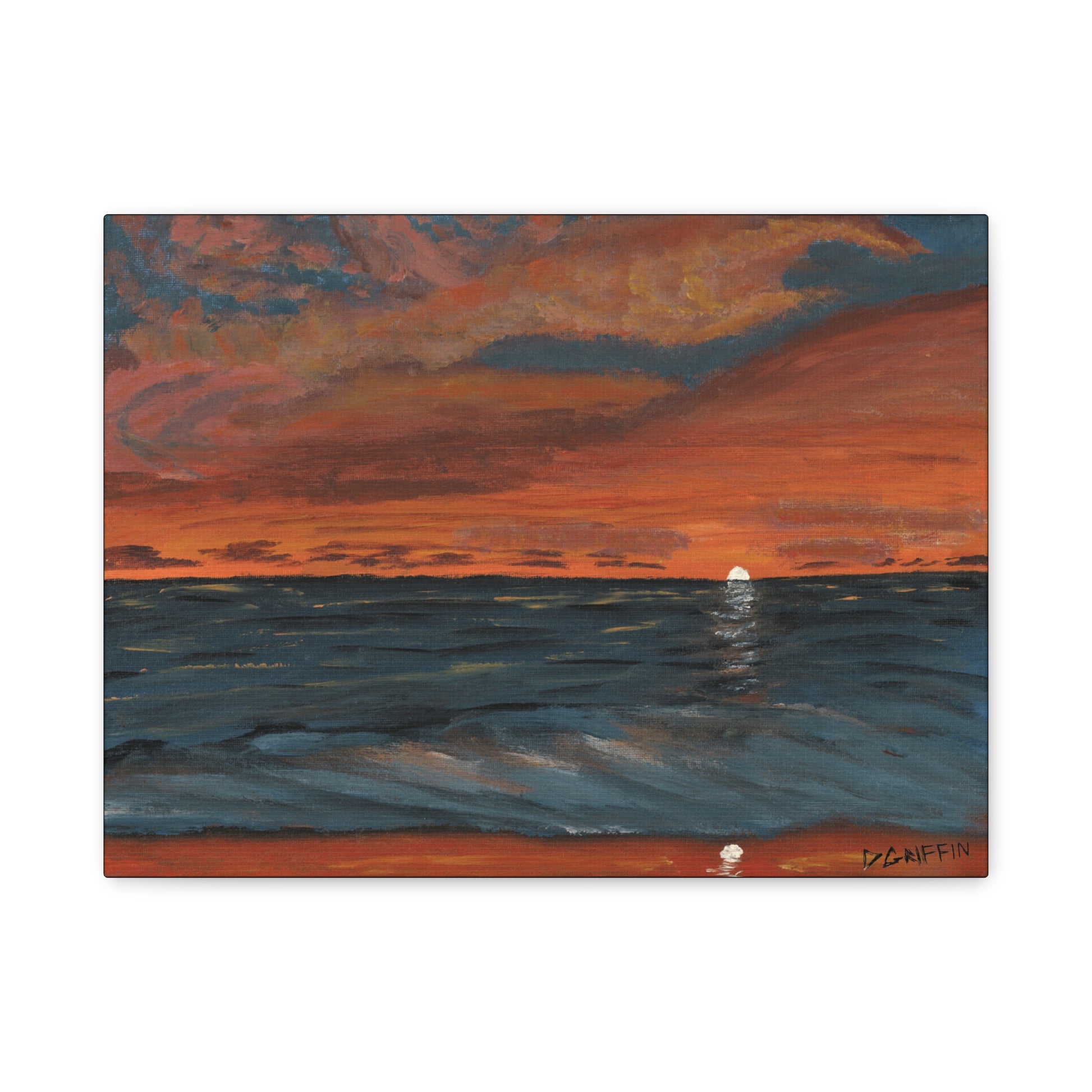 "I was deeply inspired by this dramatic view and felt an immediate need to capture the intense glow of the sunset over the deep ocean. This work represents my process of translating that powerful, unforgettable coastal energy directly onto canvas." -Daniel Griffin